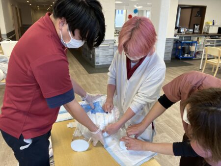 スタッフブログ 日進 👴エルステージ日進👵 2026年2月5日 こんにちは😃エルステージ日進です 1月にネピアさんを招いてオムツ講習会を おこないました😄 エルステージ日進では2回目となる講習会😊 今回のテーマは『陰部洗浄』🤩 オムツの基本的な当て方をおさらいしてから グループに分かれて演習を行いました☺️ 正しい知識と技術を習得して より良いサービスを提供できるように 励んでいきたいと思います😁 👵エルステージ日進👴