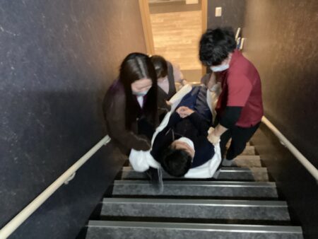 2月の勉強会では、避難誘導訓練を行いました😊