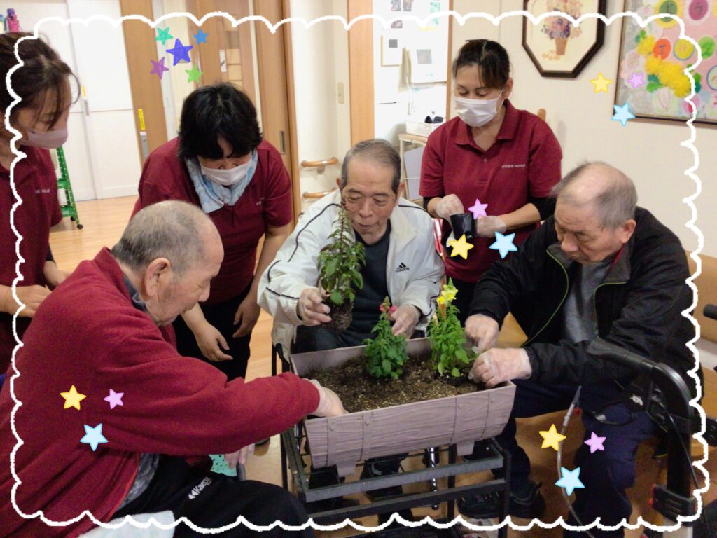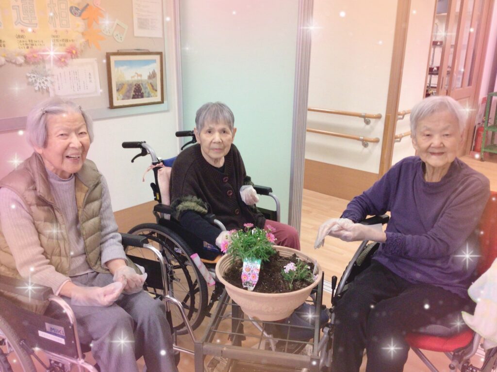 日中は暖かくなりましたが、朝晩はまだ寒いですね。先日、入居者様と一緒にお花を植えました🌼